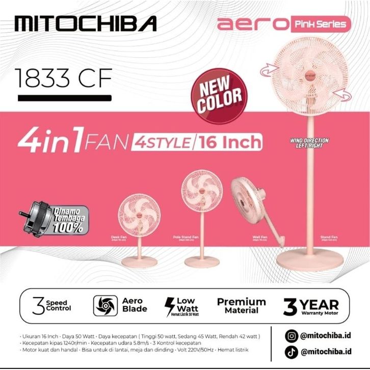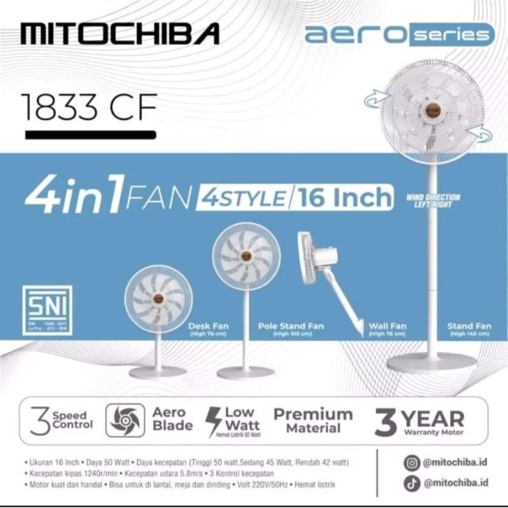 MITOCHIBA Kipas Angin Remote 3in1 Multifungsi 1733CFR 16 inch AERO Series TERMURAH TERLARIS GARANSI RESMI!!!