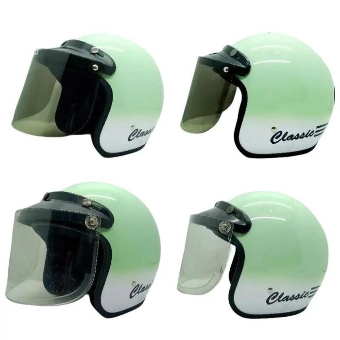 FLASH SALE HELM BOGO RETRO GRADASI KOMBINASI WARNA PUTIH KREM GLOSSY SNI PINKPUTIH CEMBUNG SMOKE