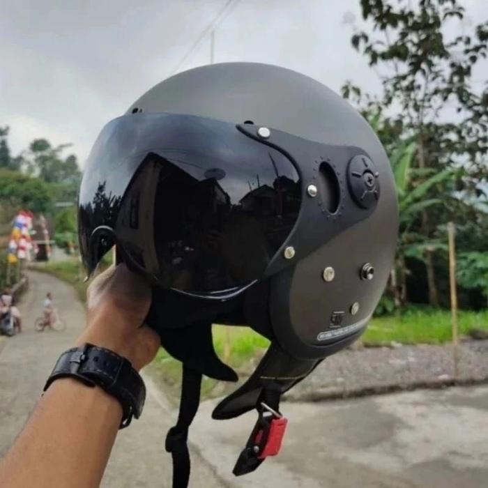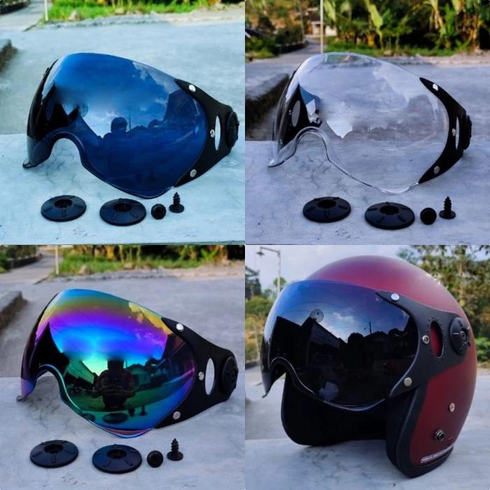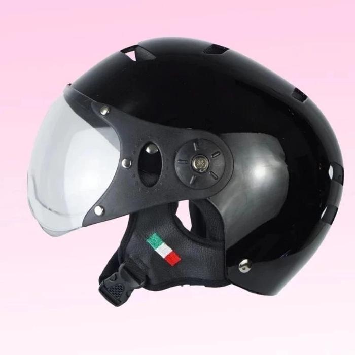 FLASH SALE KACA HELM BOGO PILOT ITALY SCOOPY ORIGINAL LENGKAP BAUT MOTORCYCLE HITAM SMOKE