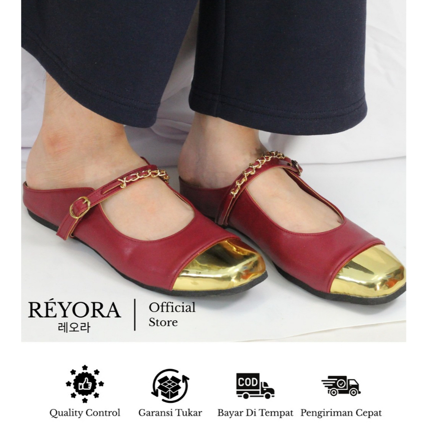 [Mall] REYORA SEPATU SANDAL FLAT MULES WANITA KOREA ELISABETH