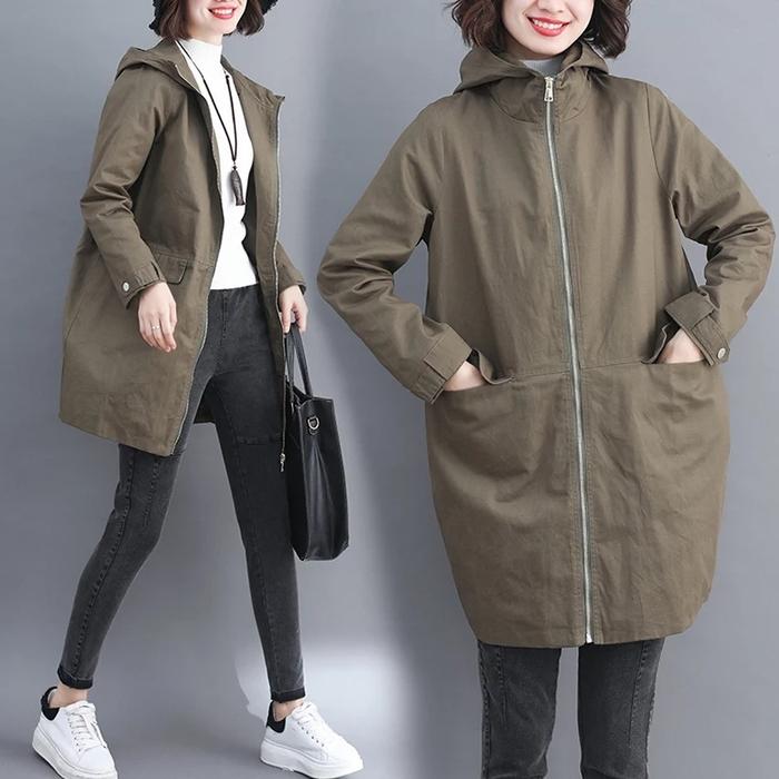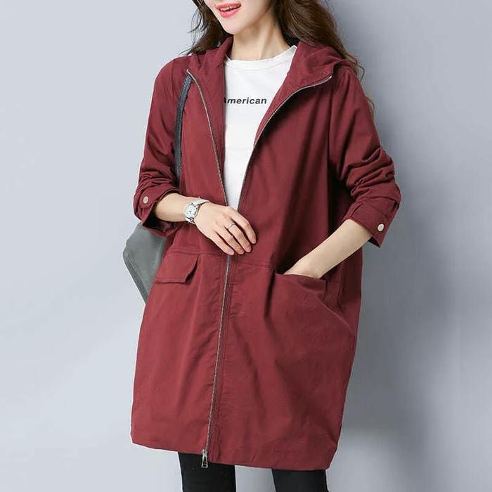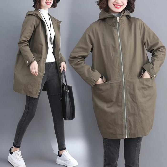 TERLARIS JAKET FORMAL PANJANG WANITA HOODIE BAHAN KAIN KATUN DRILL TERBARU CASUAL KANTONG KOTAK
