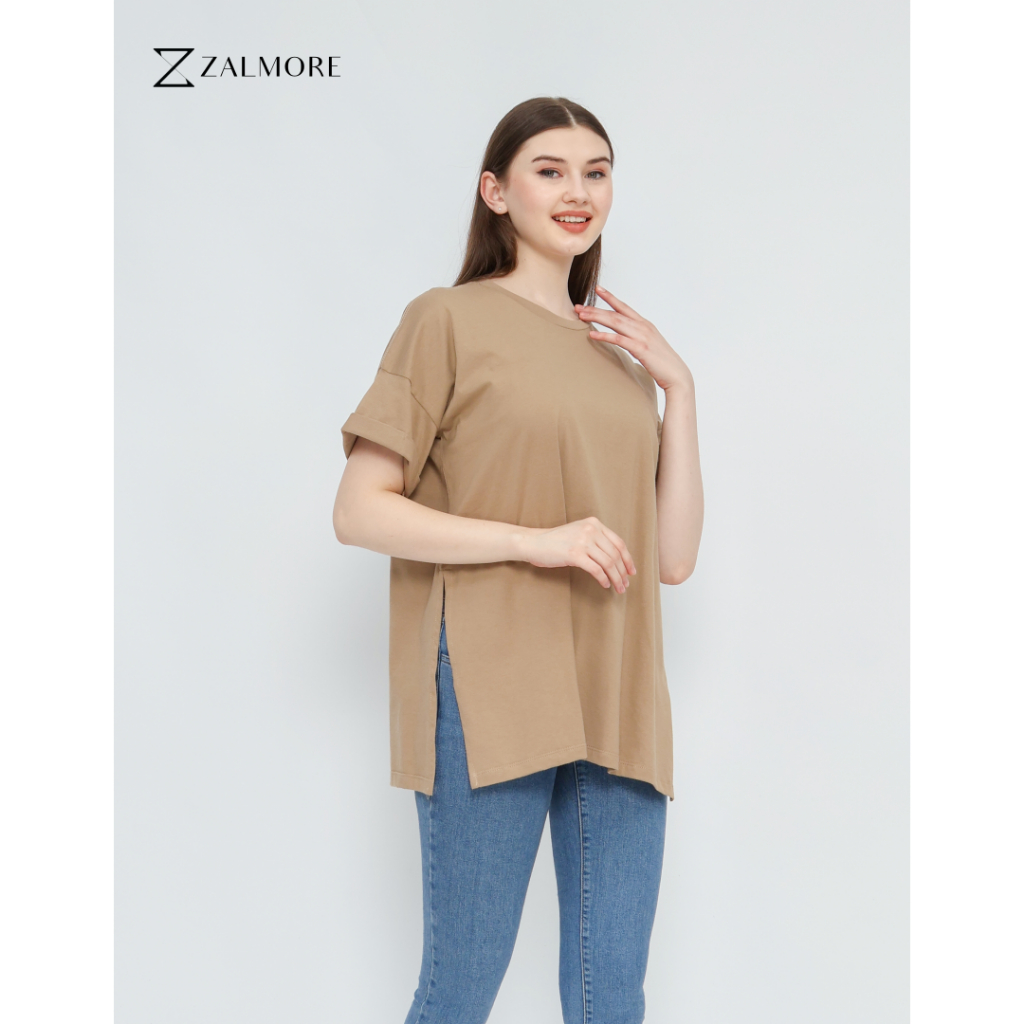 ZALMORE OVERSIZE T-SHIRT WITH SLIT PREMIUM COTTON - KAOS OVERSIZE WANITA