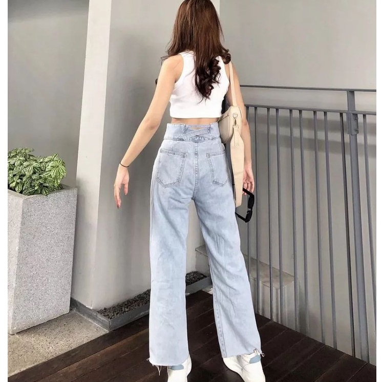 CELANA KULOT J23 - KULOT MODEL SILANG - CELANA PANJANG HW - CELANA JEANS KULOT - JEANS IMPORT - CELANA X RAWIS - CELANA LOOSE SILANG -