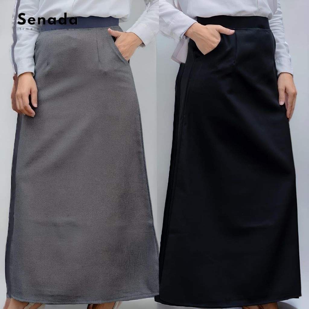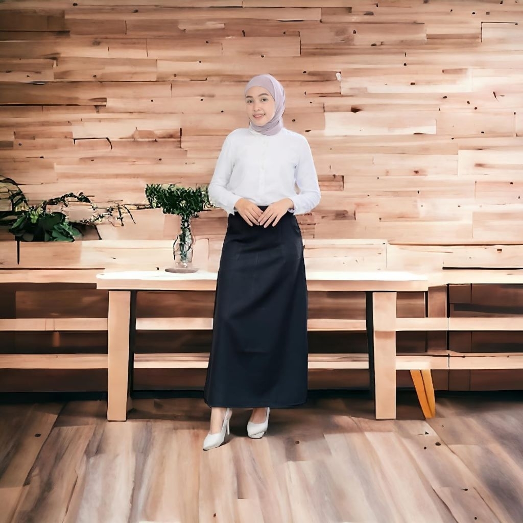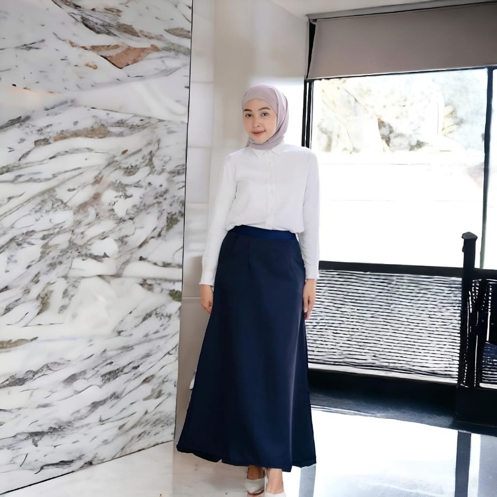 DEJIFA - ROK PANJANG WANITA PINGGANG KARET A LINE UKURAN JUMBO S-5L COKLAT