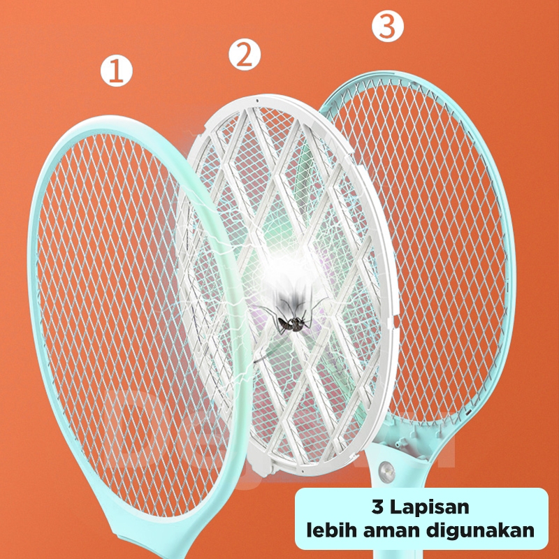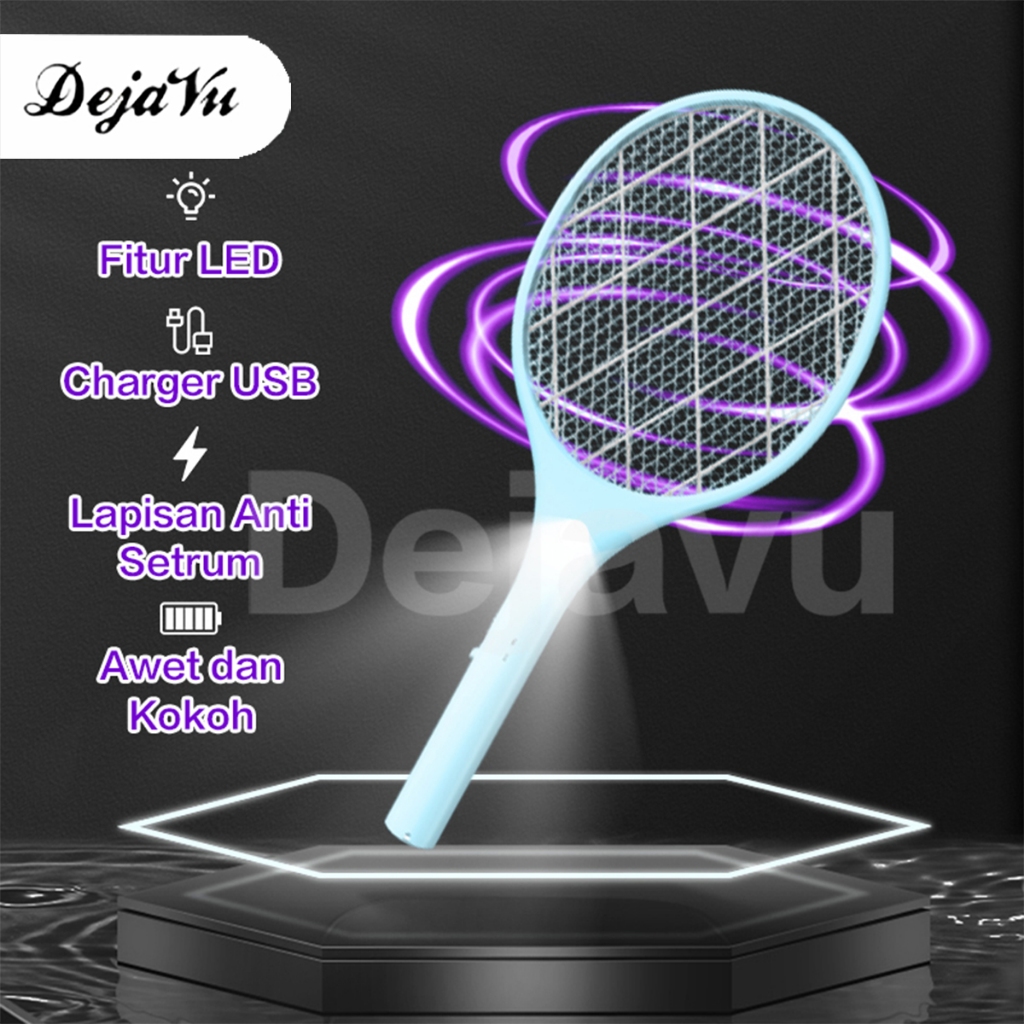 Dejavu Raket Nyamuk Charger Listrik Raket Nyamuk Sinar UV Killer LED Light Rechargeable Pembunuh Elektrik Multifungsi HE
