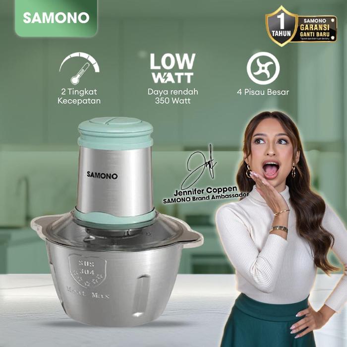 Samono 2 Liter Meat Grinder Chopper 4 Mata Pisau Wadah Stainless Garansi 1 Tahun [SW-CL350]