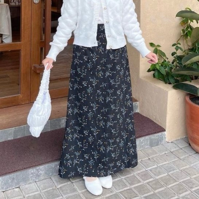 ROK FLORAL SKIRT / ROK MOTIF BUNGA PATTERN KOREAN MIDI SKIRT / ROK KOREAN STYLE