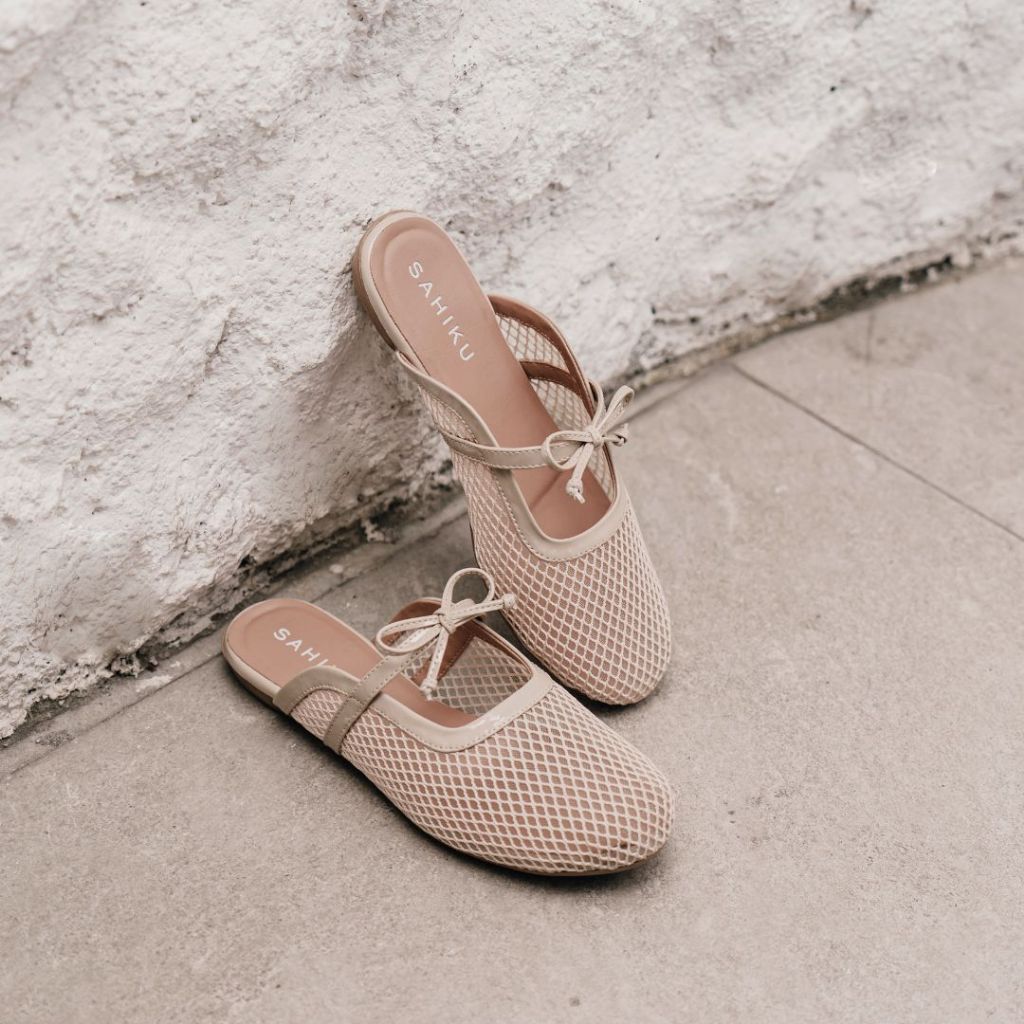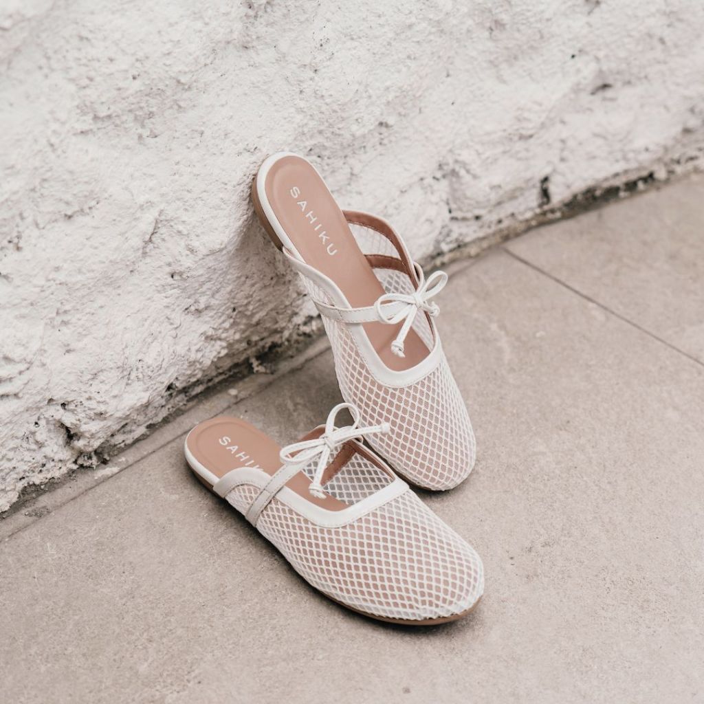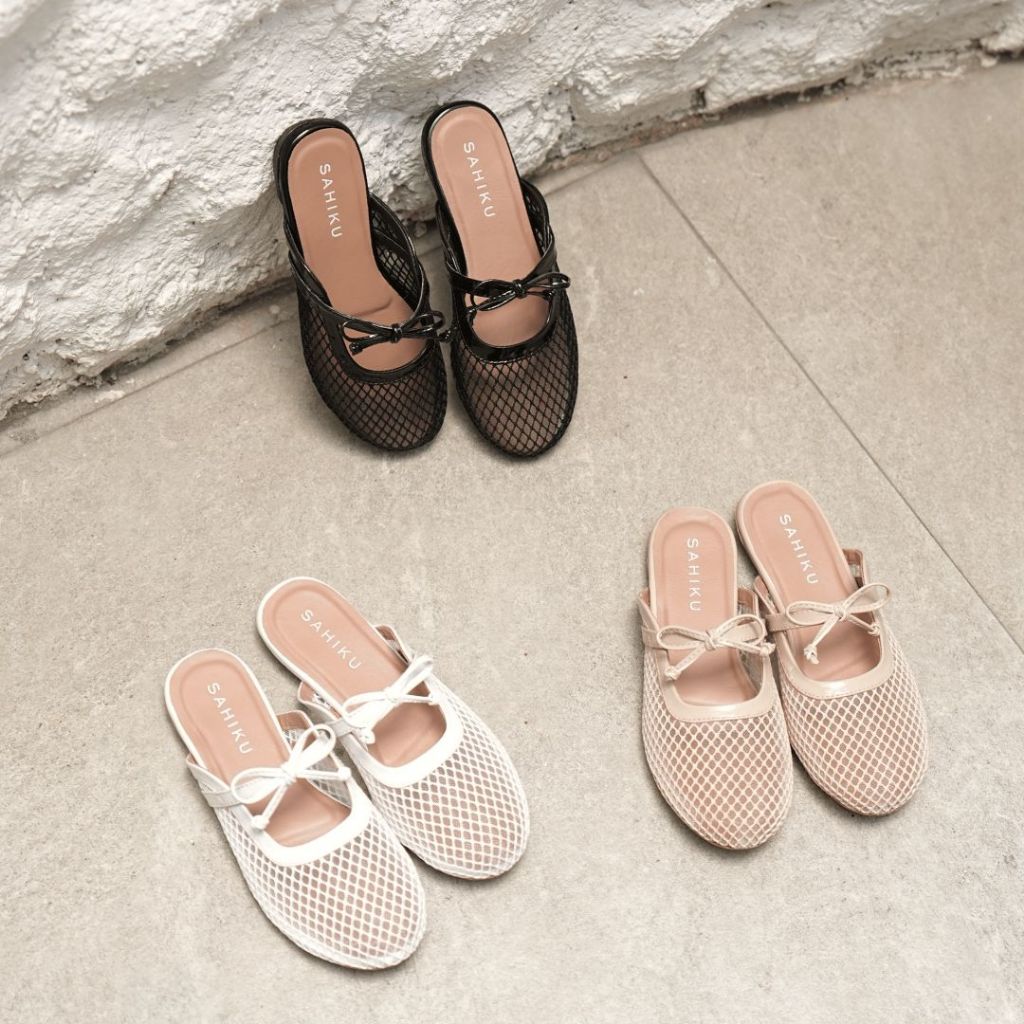 [Mall] SAHIKU-KIARA MESH FLAT MULES WANITA | SELOP BALET FISHNET | SANDAL COQUETTE JARING NET KOREAN STYLE