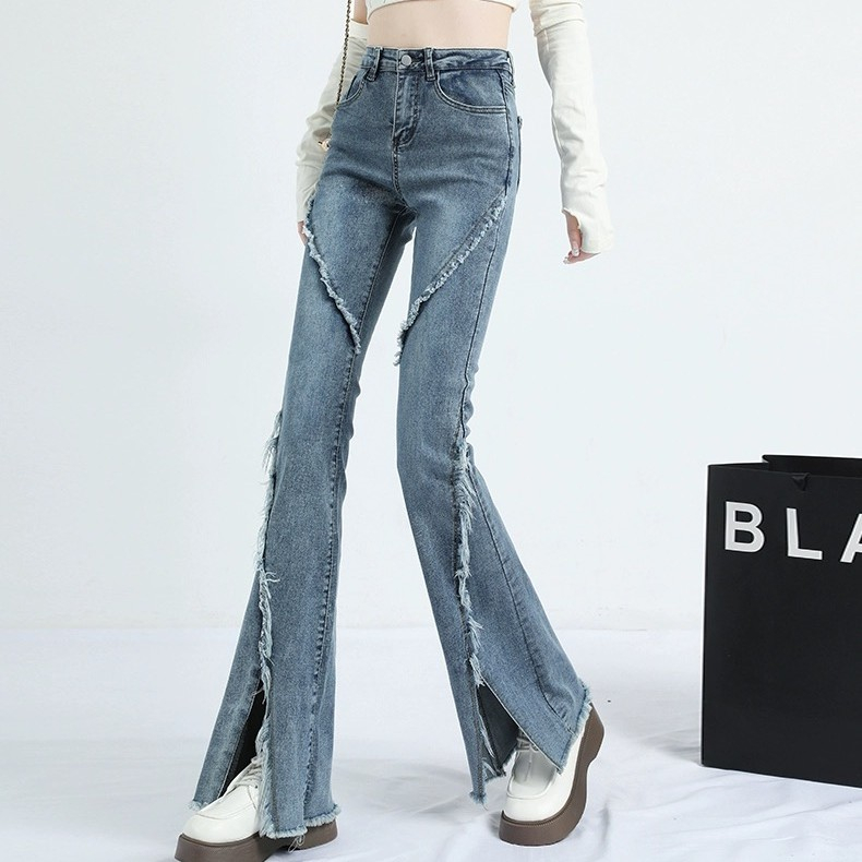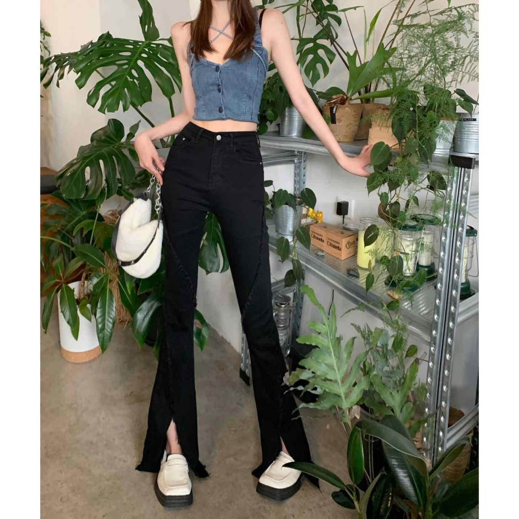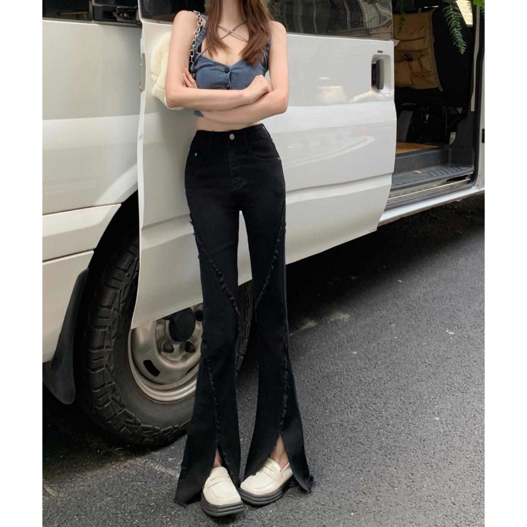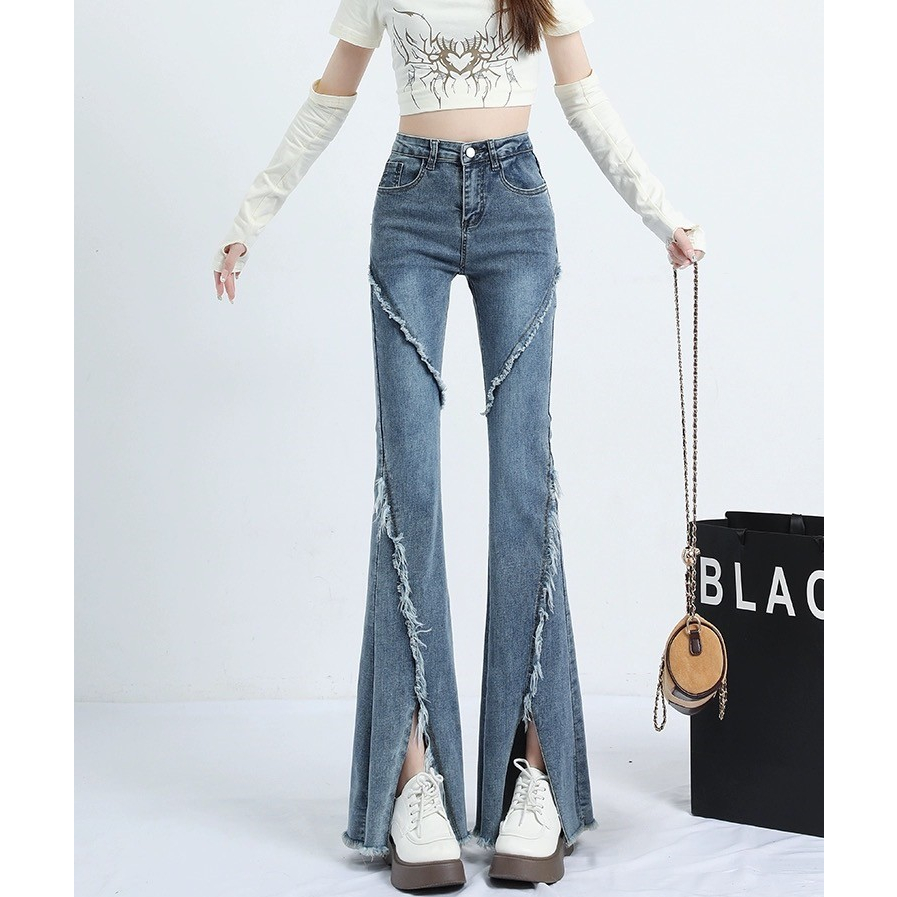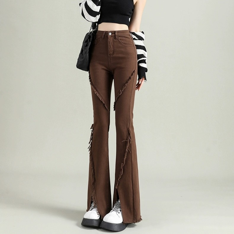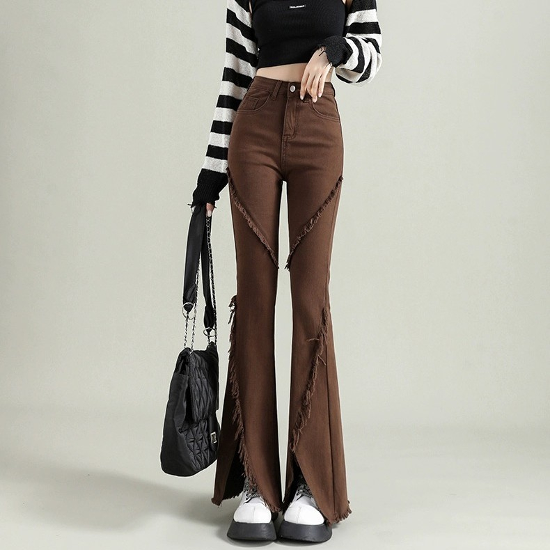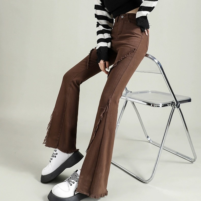 CELANA JEANS PINGGANG TINGGI WANITA GAYA KOREA CELANA DENIM BERKOBAR COKLAT JEANS BERKOBAR COKLAT