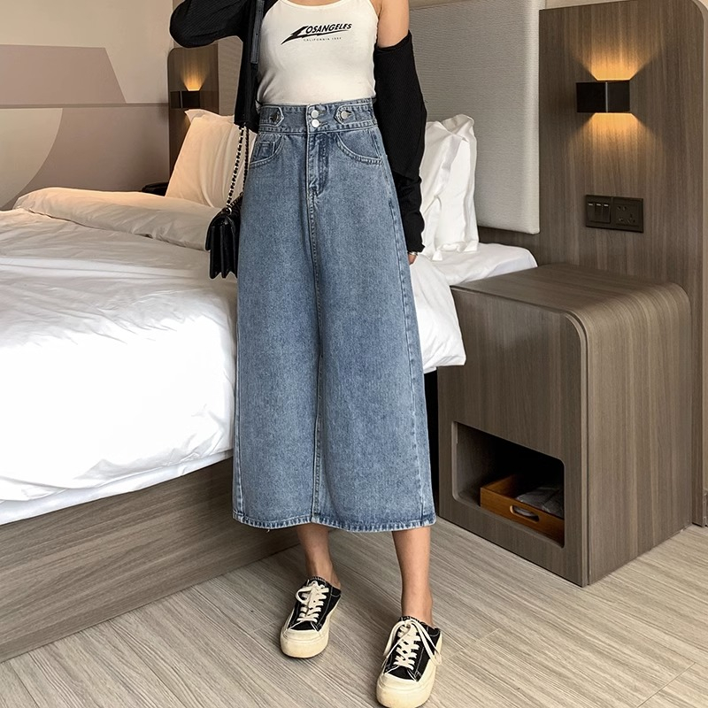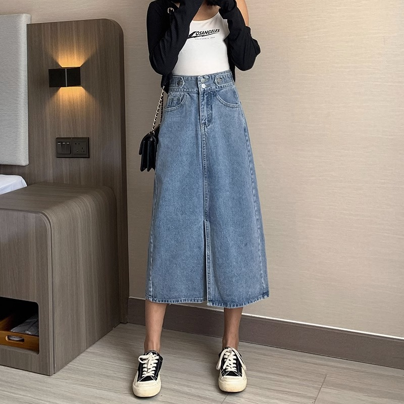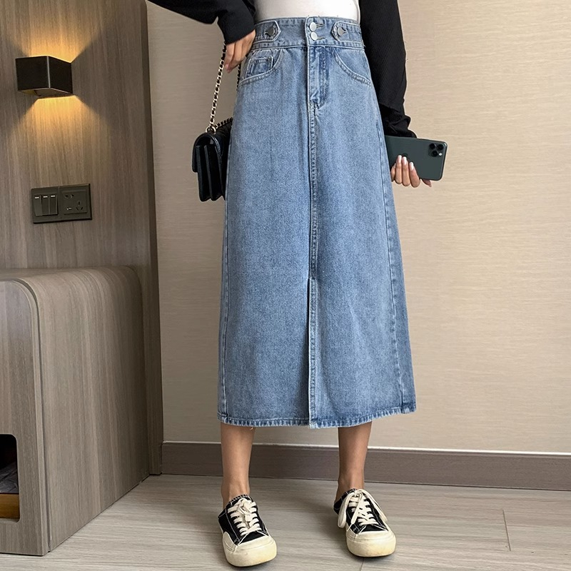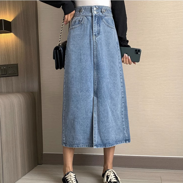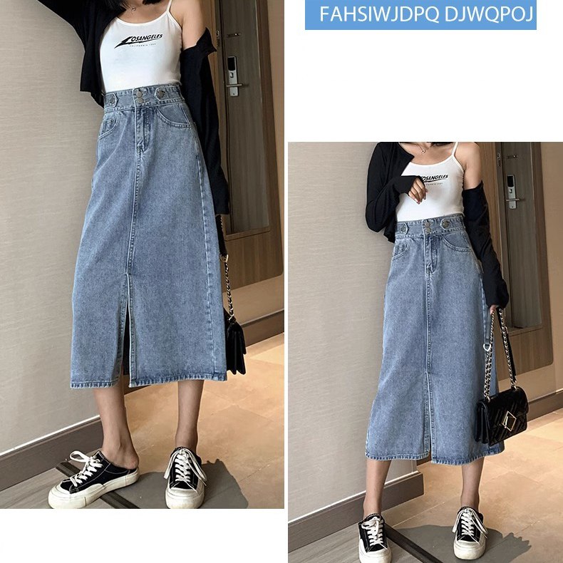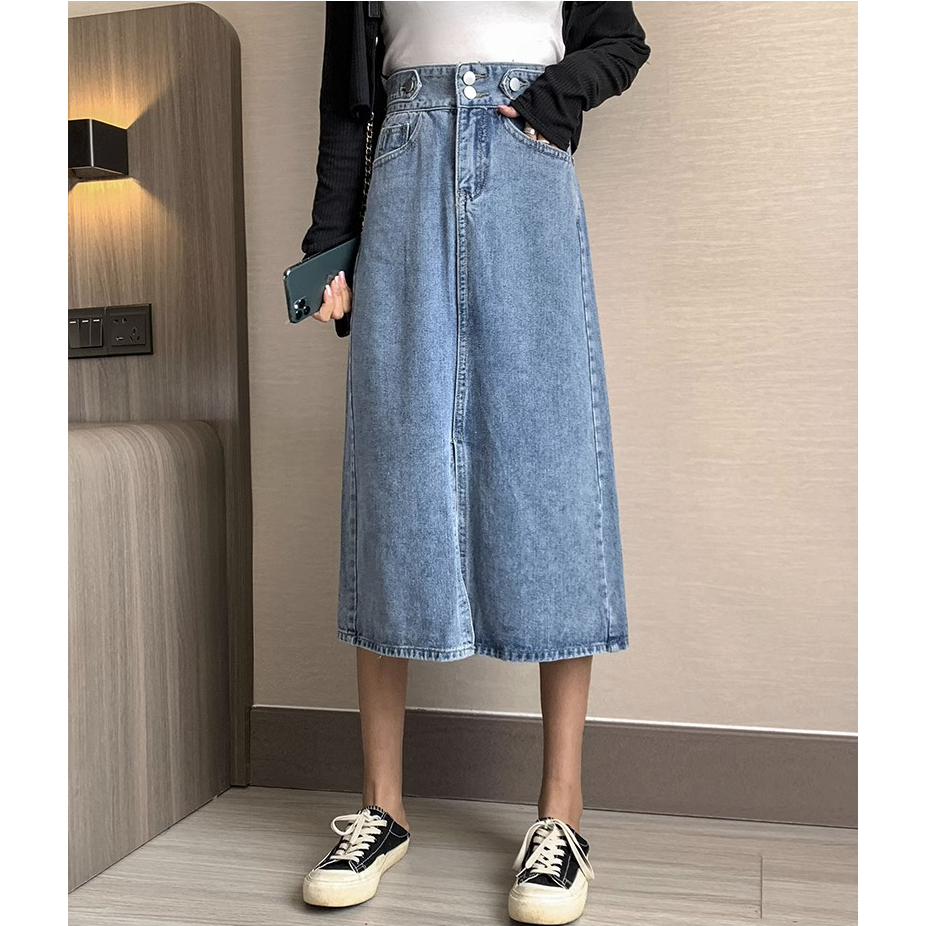 EMILY ROK-BIRU HIGHWAIST KASUAL ROK JEANS A-LINE MIDI ROK