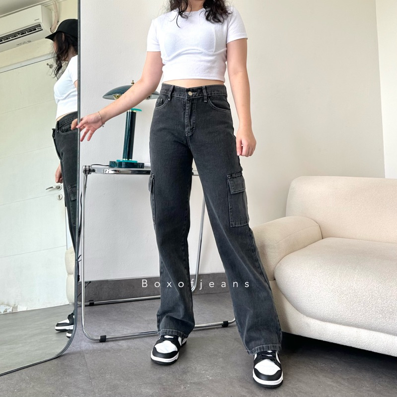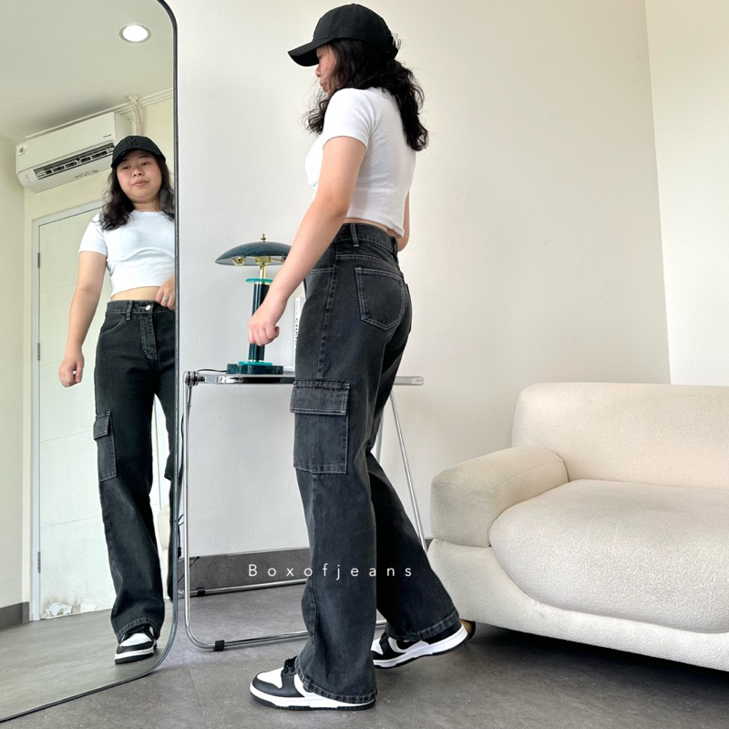 BOXOFJEANS - CARGO HW LOOSE JEANS - SNOW BLACK