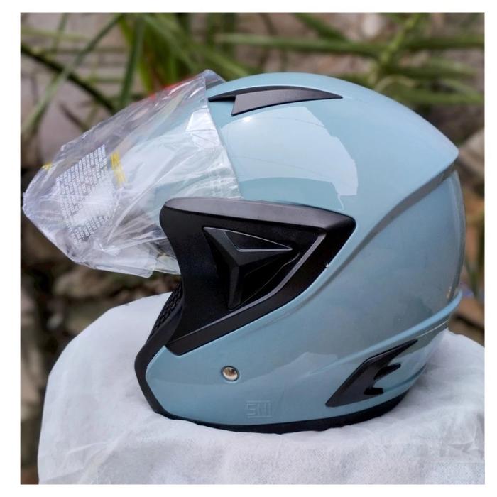 FLASH SALE HELM PRIA WANITA MODEL JP13 WARNA POLOS SNI HIJAU TOSCA GLOSSY HITAM GLOSSY
