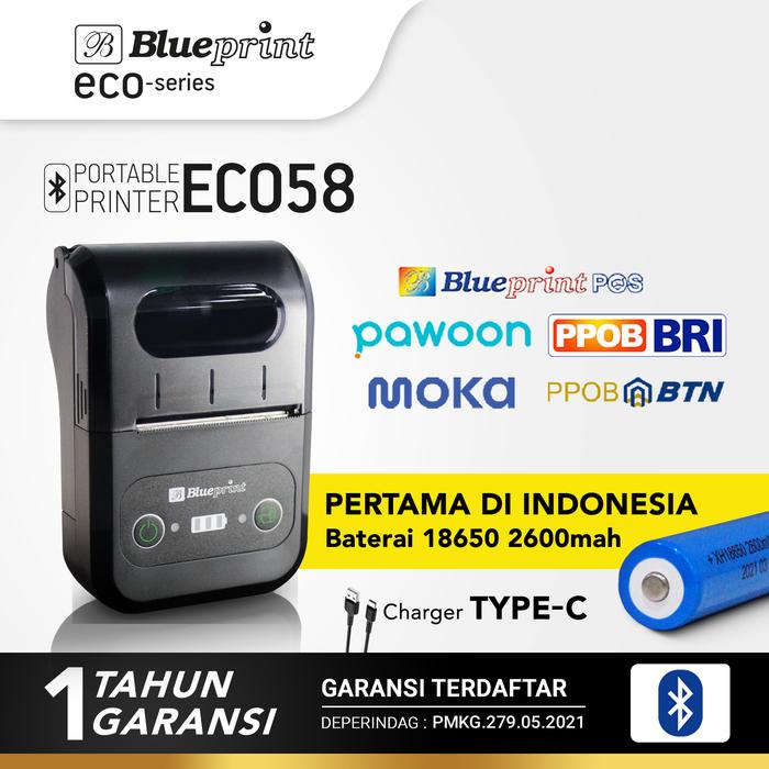 FLASH SALE PORTABLE PRINTER THERMAL MINI BLUETOOTH BLUEPRINT ECO58 BATERAI 18650 ECO58