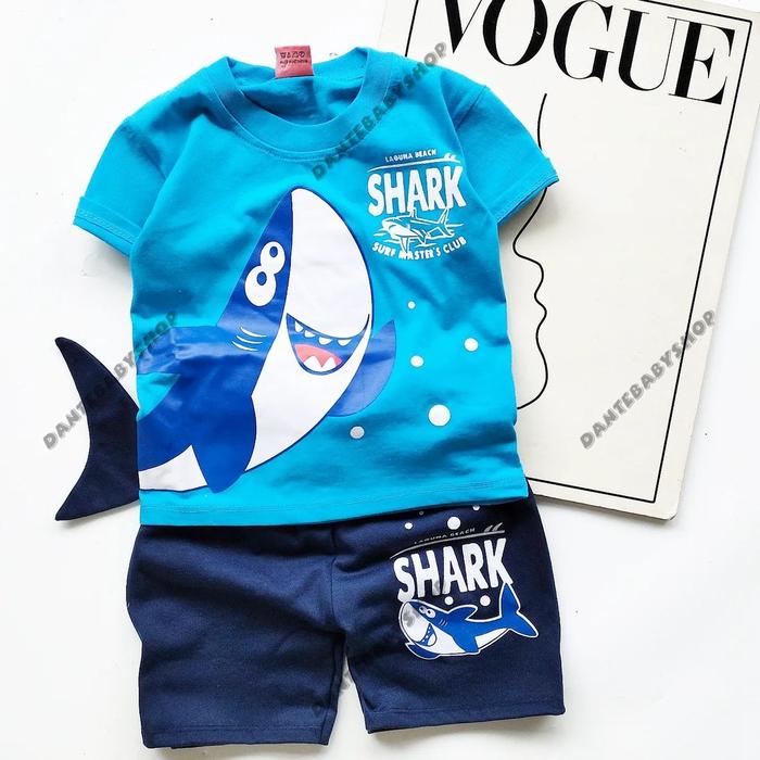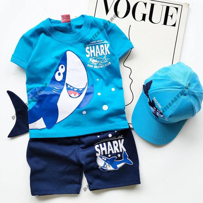 FLASH SALE BAJU BABY SHARK ANAK COWOK SETELAN HIU KIDS ADA TOPI 110 TAHUN BJU+CLANA+TOPI 918 BULAN