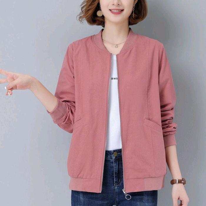 TERLARIS AQA 22JAKET RIB WANITA MODEL TERBARU JAKET BOMBER STYLE KOREA BAHAN TEBAL LEMBUTATAS