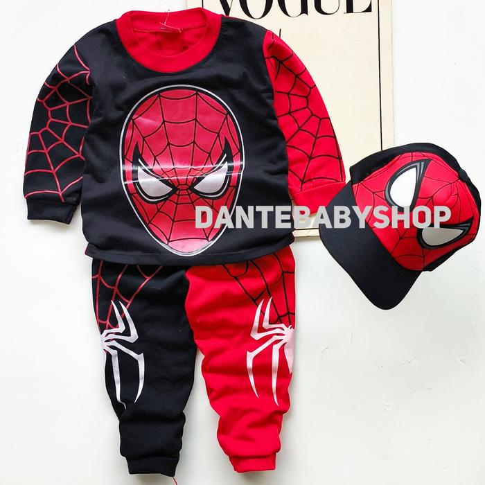 FLASH SALE BAJU SPIDERMAN ANAK LAKI LAKI LENGAN PANJANG ADA TOPI 910 TAHUN 918 BULAN BJU+CLANA+TOPI