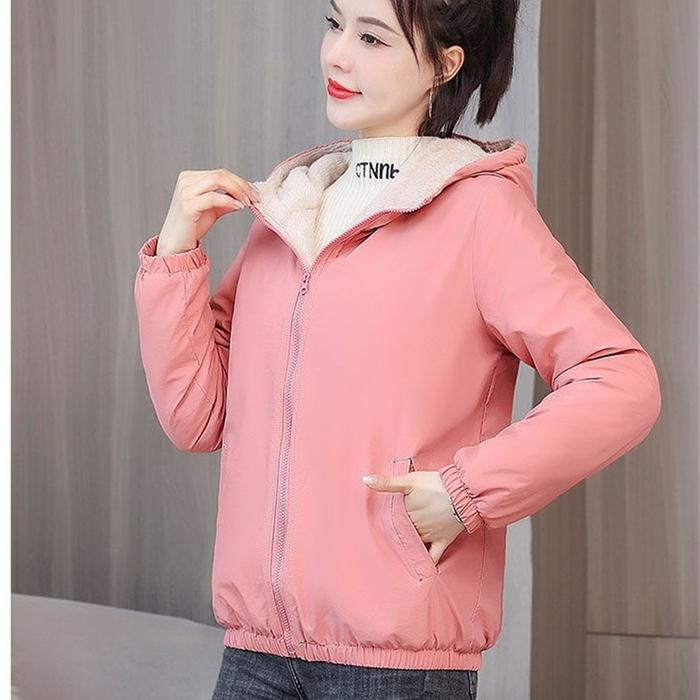 TERLARIS JAKET BULU WANITA HOODIE TERBARU BAHAN DASAR KAIN POLYESTER NYAMAN PINK 5XL
