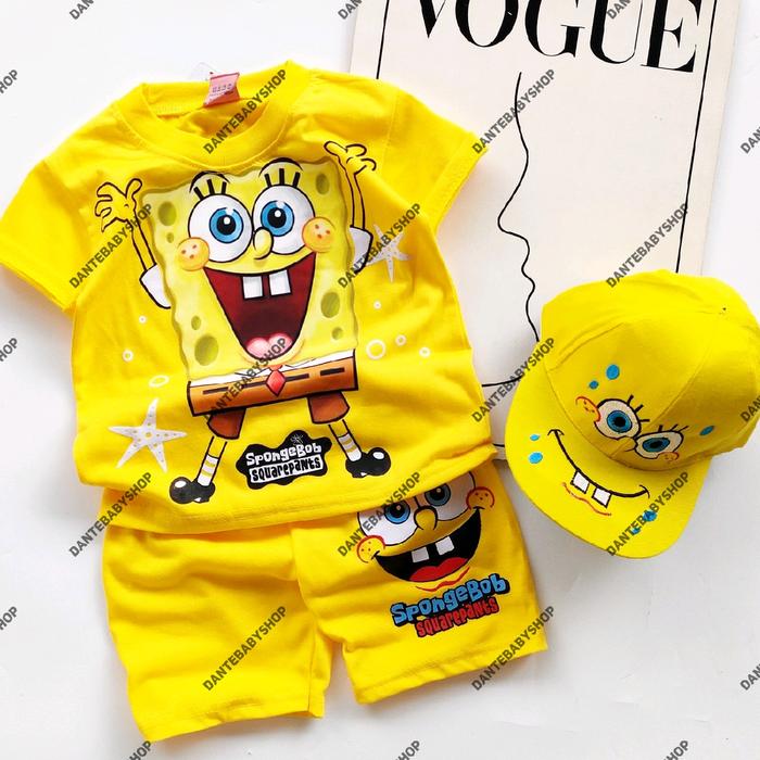 FLASH SALE BAJU ANAK COWOK CEWEK SETELAN SPONGEBOB ANAK LUCU ADA TOPI UNTUK UMUR 110 TAHUN LAKILAKI KATUN BAYI BAJU+CELANA+TOPI 918 BLN