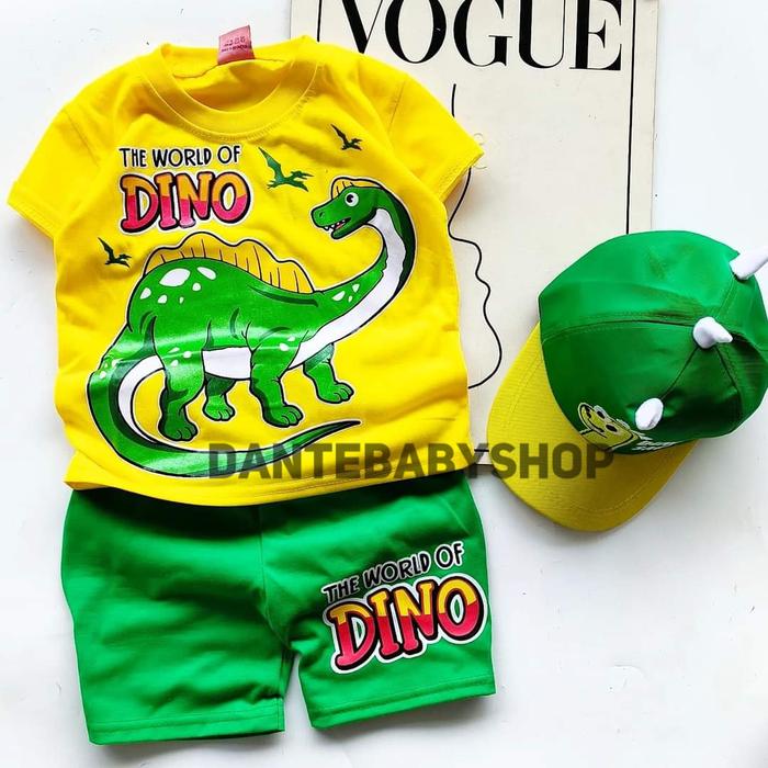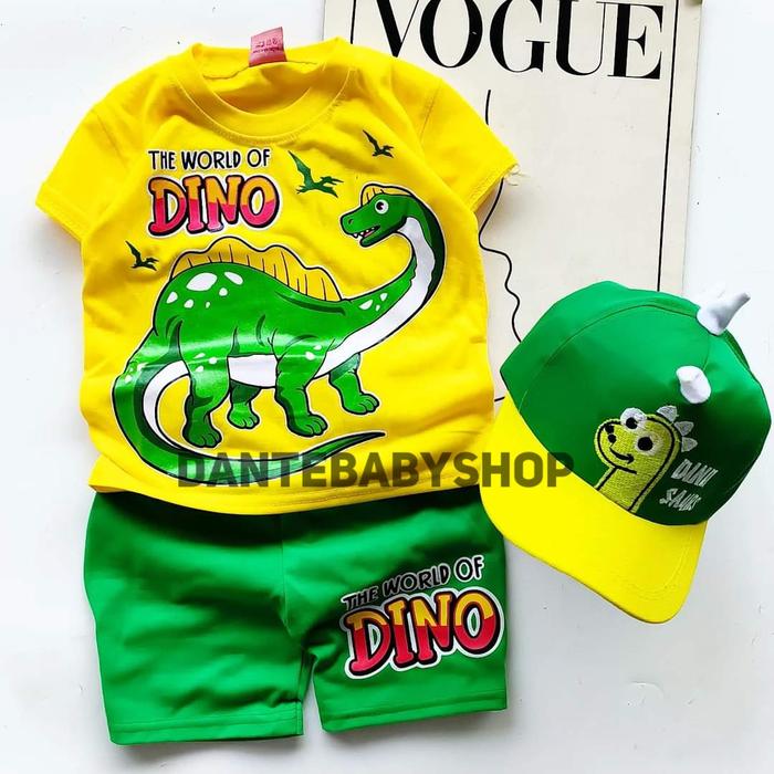 FLASH SALE SETELAN BAJU ANAK MOTIF DINO WORLD LUCU BAHAN BAGUS UNTUK 110 TAHUN BJU+CELANA+TOPI 918 BULAN