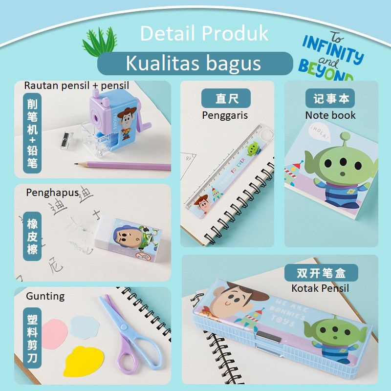 SET STATIONARY ANAK PERLENGKAPAN TULIS SEKOLAH KARAKTER ELSA MICKEY MINNIE SPIDERMAN LOTSO BUZZ IDE KADO ULANG TAHUN