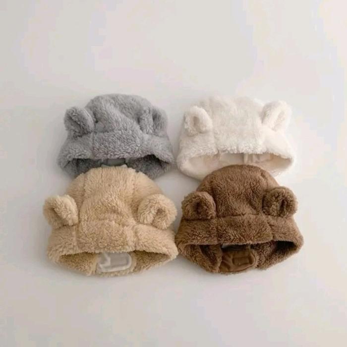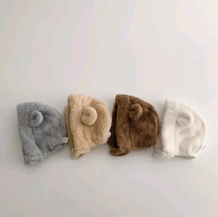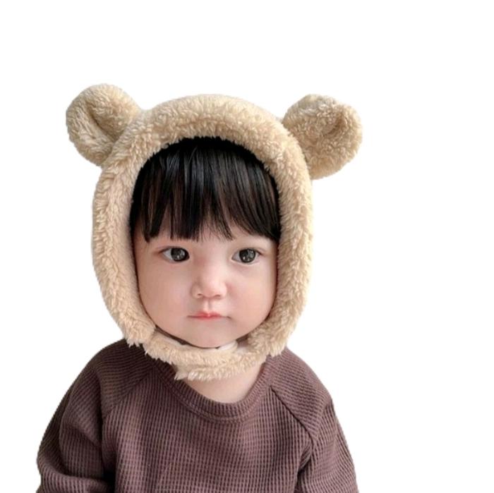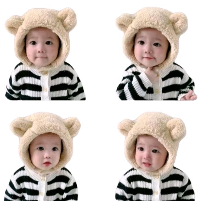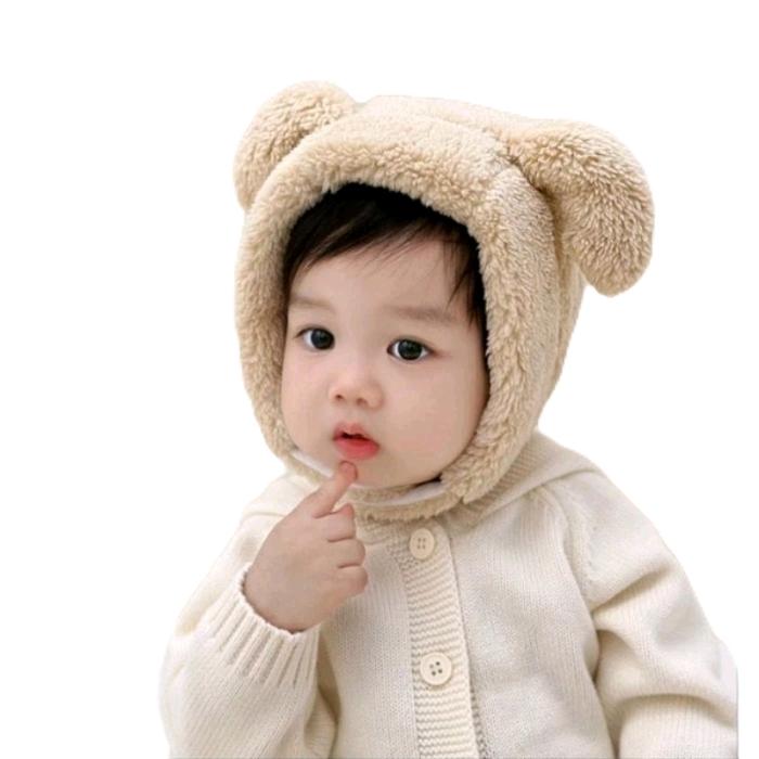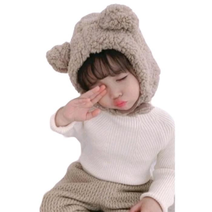 FLASH SALE TOPI ANAK BALITA BEAR EAR UNISEX || KUPLUK ANAK PENUTUP KEPALA DAN TELINGA COKLAT