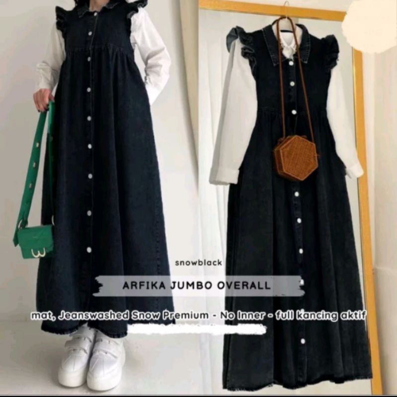 LV - SACHI OVERALL JEANS JUMBO WANITA KEKINIAN BAJU DRESS OVERALL JUMBO