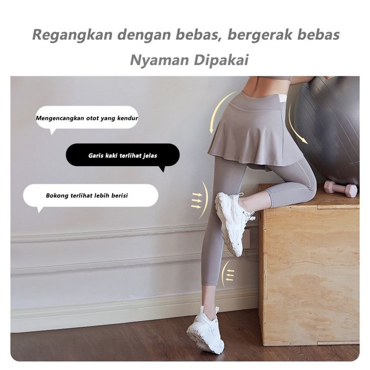 Legging Celana Rok Olahraga Wanita High Waist 2 in 1 Skirt Yoga Gym Running Sport