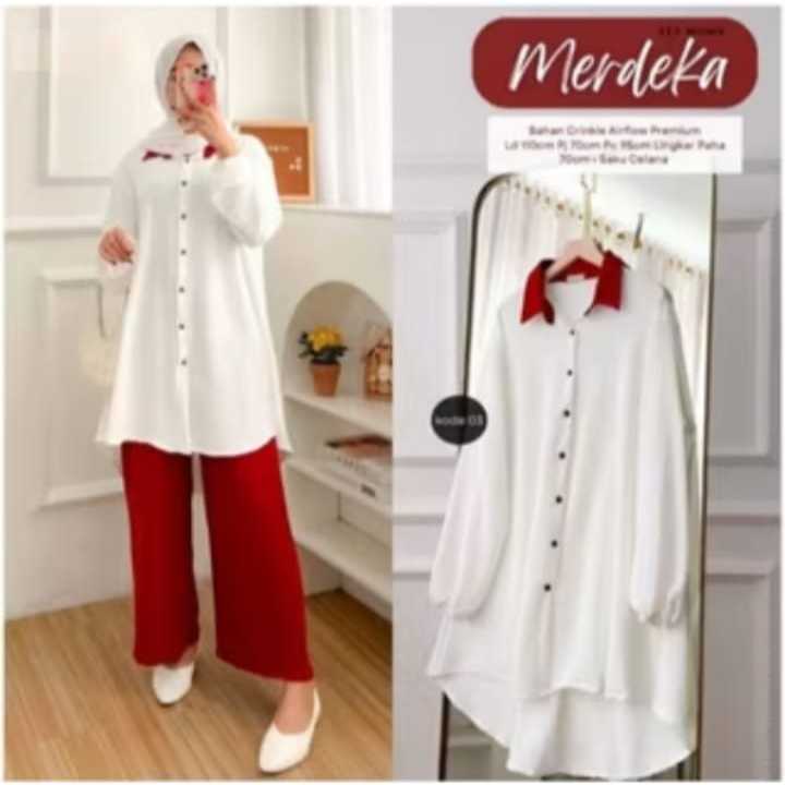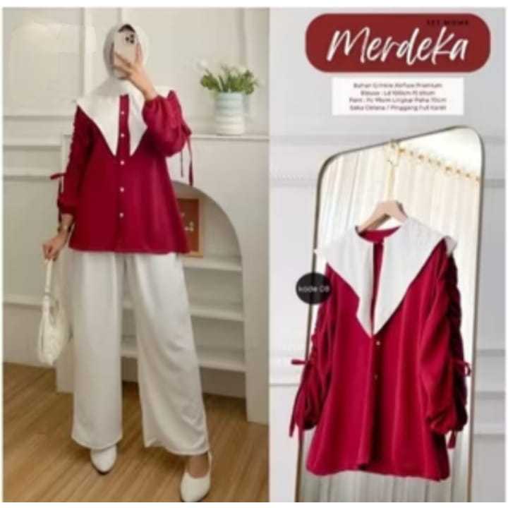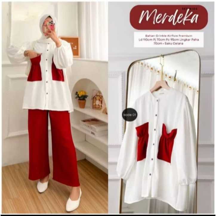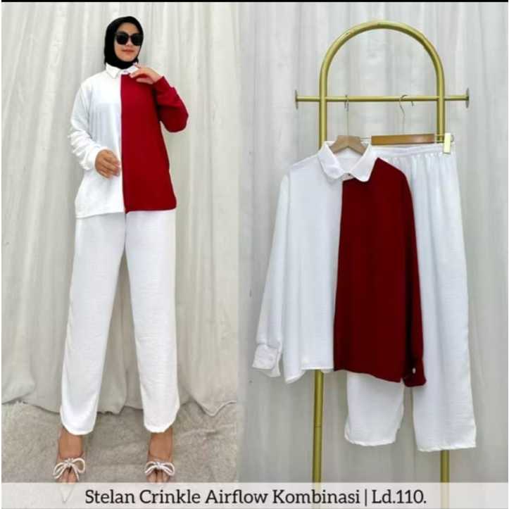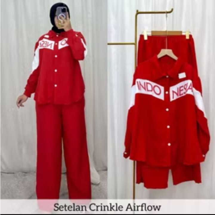 INNARA SETELAN MERAH PUTIH/ SET MERAH PUTIH CRINGKEL AIRFLOW/STELAN MERAH PUTIH TERBARU