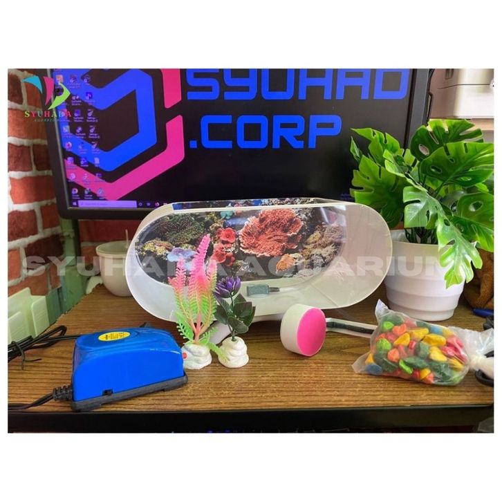 Aquarium Mini Set Lengkap M02 Dengan Oksigen dan Lampu LED 3 Watt