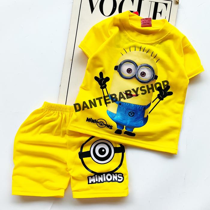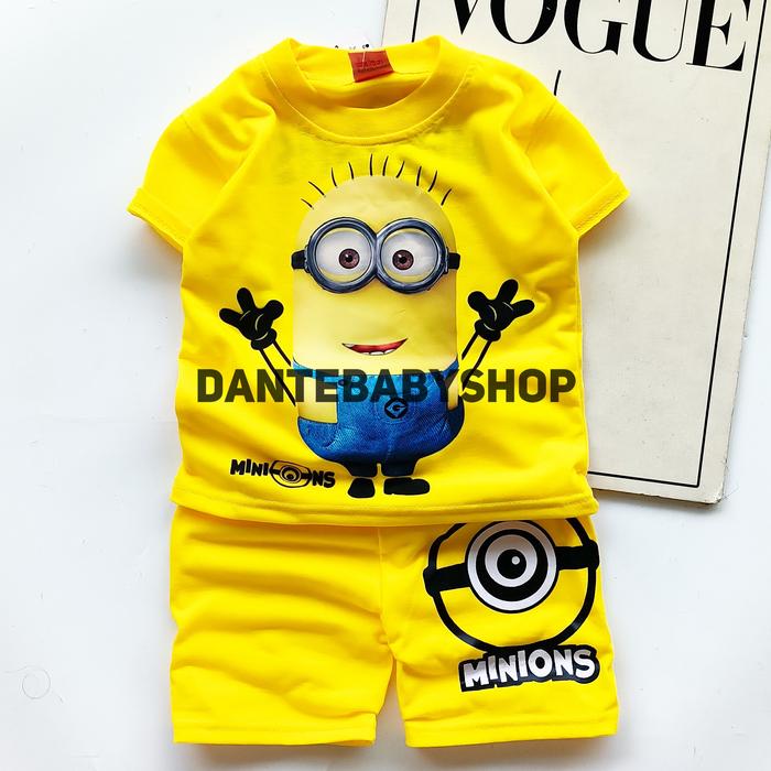 FLASH SALE BAJU MINION ANAK COWOK CEWEK SETELAN MINIONS ANAK MURAH BAGUS BISA PAKAI TOPI UNTUK UMUR 110 TAHUN 918BLN BJU+CLNA+TOPI