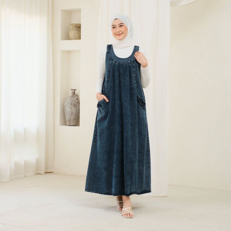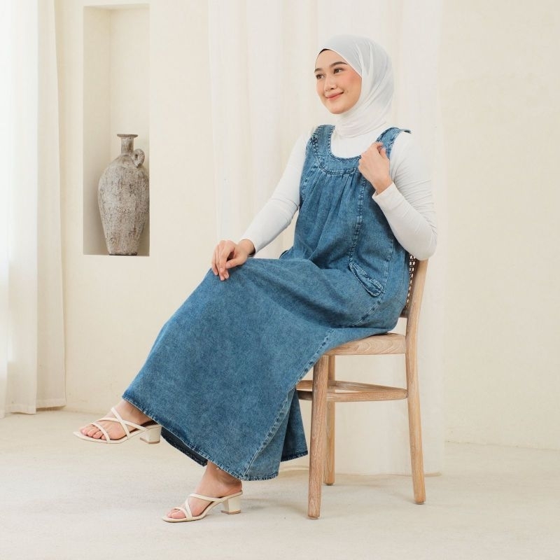 GAMIS JEANS OVERALL YUKENSI WANITA REMPEL KANTONG 2 ALL SIZE MAKSIMAL BB 75KG