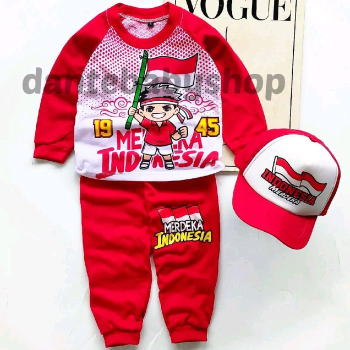 FLASH SALE BAJU MERAH PUTIH ANAK LENGAN PANJANG SETELAN KEMERDEKAAN ANAK LAKI LAKI BISA PAKAI TOPI UNTUK UMUR 110 TAHUN FASHION CELANA BAJU+CELANA+TOPI 12TH