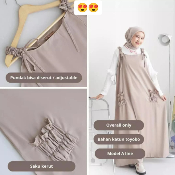 DWAF FASHION // KEIKO OVERALL // GAMIS KOREAN STYLE MODEL SAKU DEPAN // UKURAN JUMBO XXL