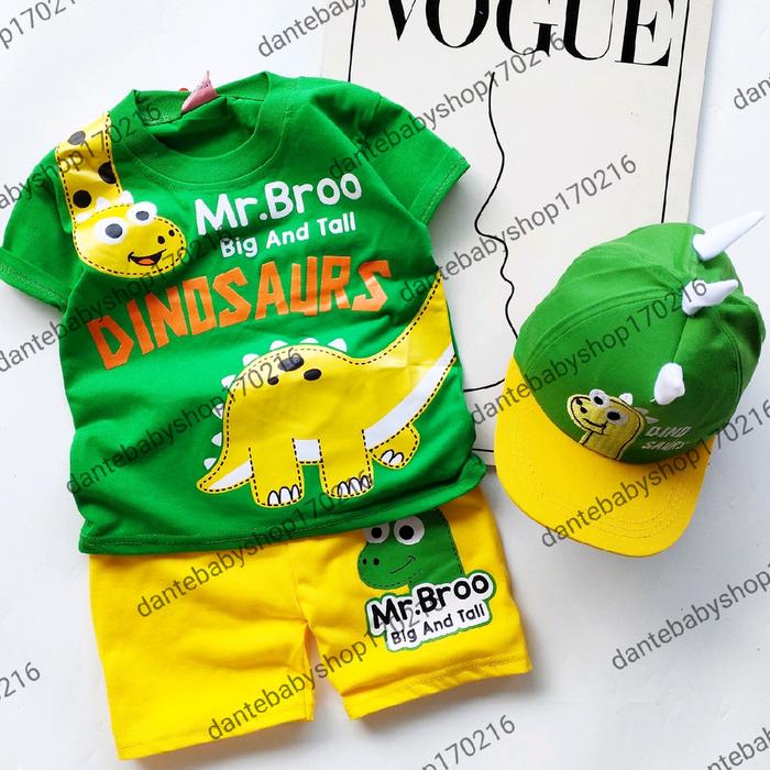 FLASH SALE BAJU ANAK DINO SETELAN DINO ANAK COWOK CEWEK ADA TOPI UNTUK UMUR 110 TAHUN LENGAN PENDEK BAYI BAJU+CELANA+TOPI 918BLN