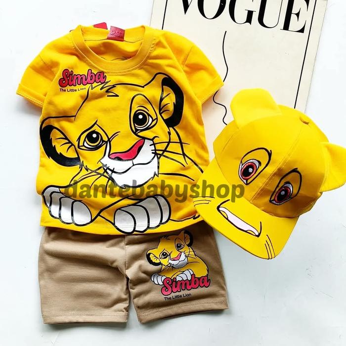FLASH SALE BAJU ANAK COWOK CEWEK MOTIF LION KING SETELAN SIMBA THE LITTLE LION UMUR 110 TAHUN 9 18 BULAN BJU+CLANA+TOPI