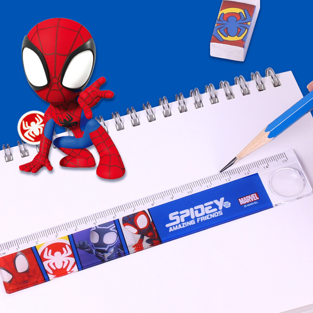 Toys Kingdom Kiddy Star Unimass Set Alat Tulis & Tempat Pensil Spiderman - Biru/Merah Kit Stationery Kotak Pensil Gunting Penghapus Penggaris Pensil Rautan Peralatan Dan Perlengkapan Tulis Sekolah