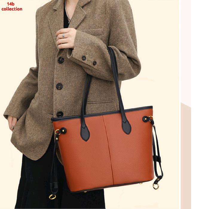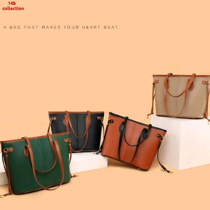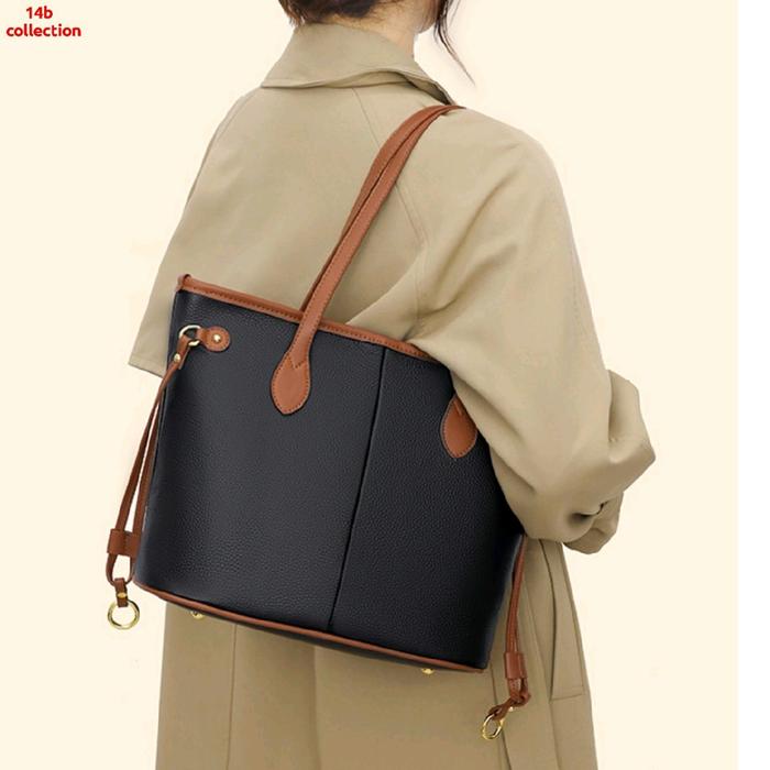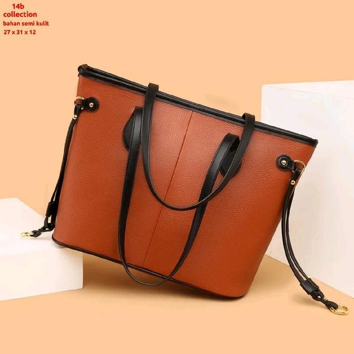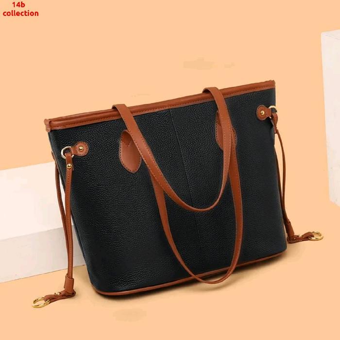 FLASH SALE TAS TOTE BAG WANITA SEMI KULIT SINTETIS POLOS HITAM