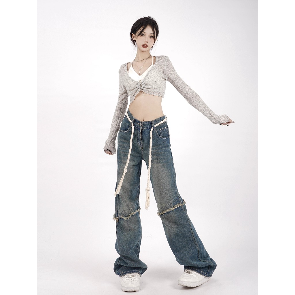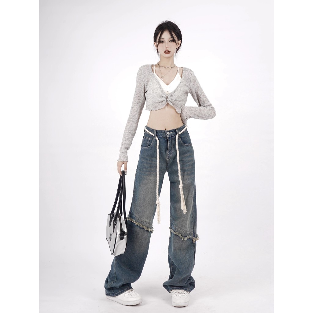 KEYGIRL NEW BIRU RETRO CELANA JEANS PANJANG WANITA HIGH WAIST LOOSE PANTS PREMIUM CELANA JEANS KULOT KOREA STYLE WANITA JUMBO KEKINIAN