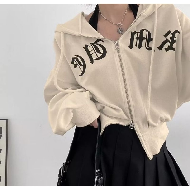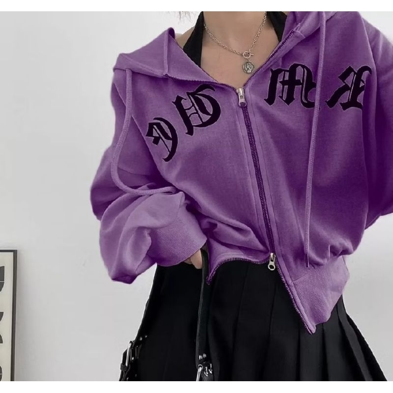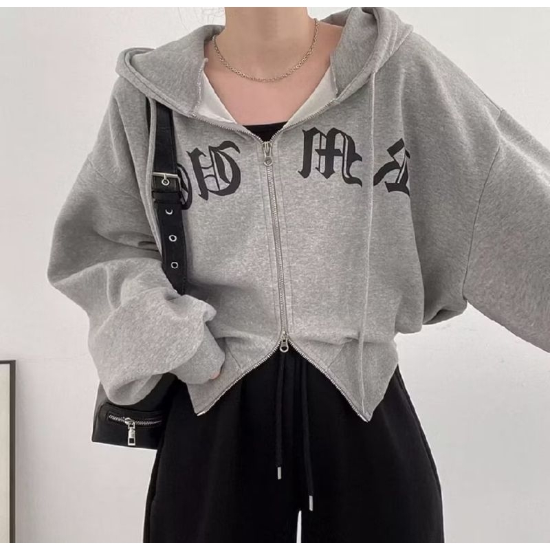 DOUBLE ZIPPER CROPE AMHD JAKET WANITA FLEECE LEMBUT