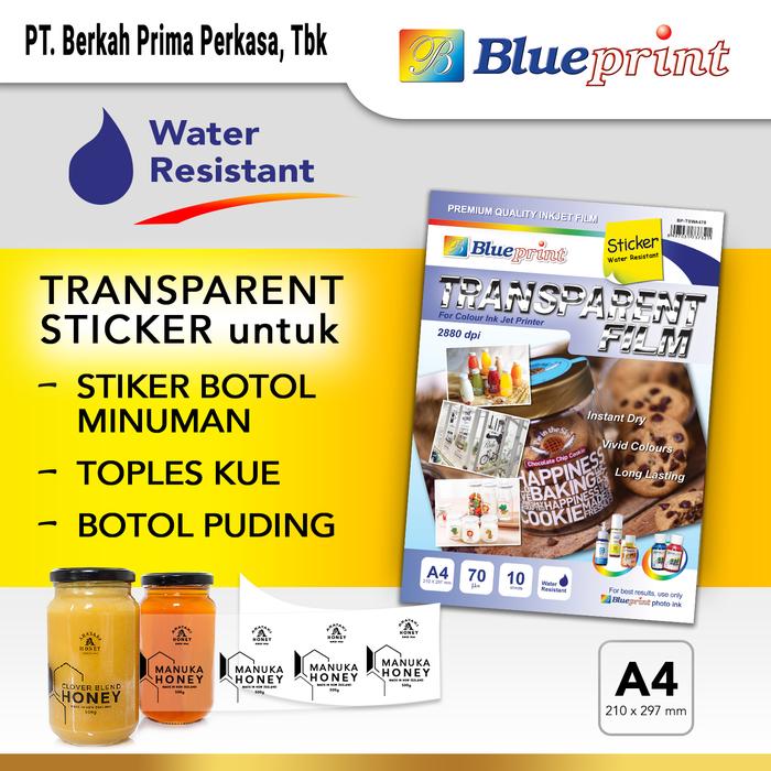 FLASH SALE KERTAS STIKER A4 BLUEPRINT STICKER VARIAN GLOSSY INKJET TRANSPARENT GLOSSY