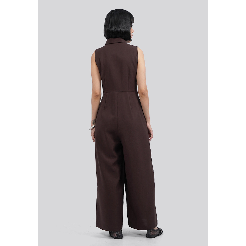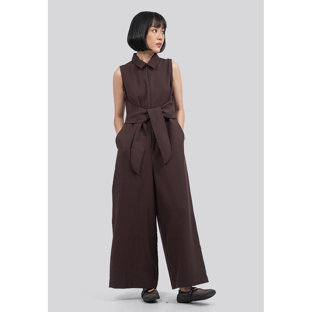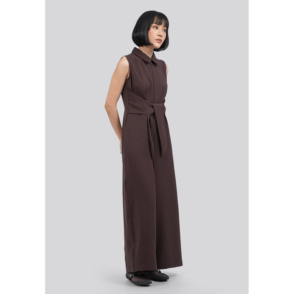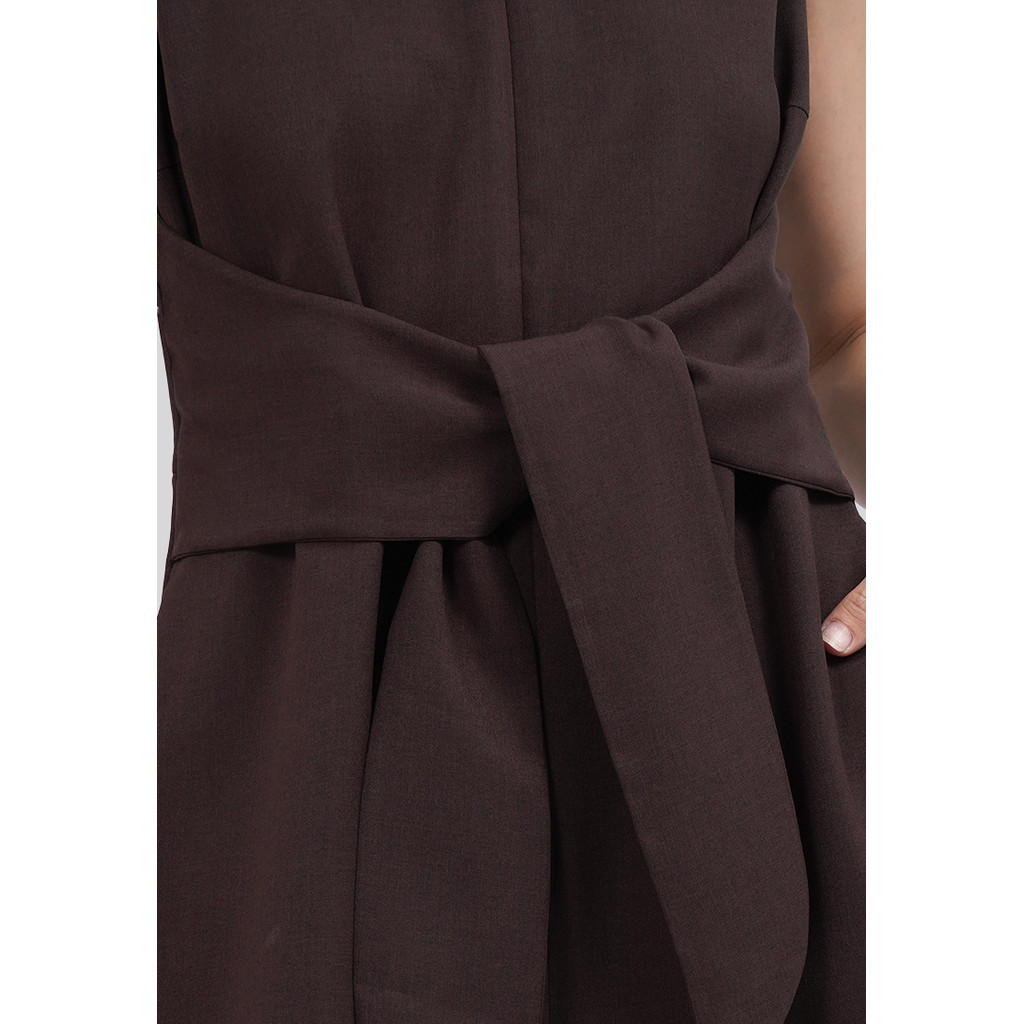 EXECUTIVE BELTED SLEEVELESS JUMPSUIT DARK BROWN