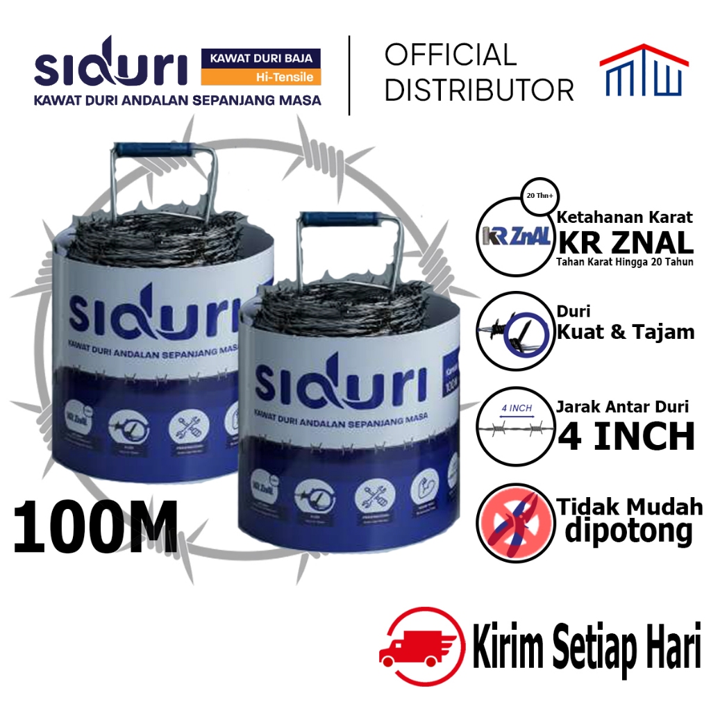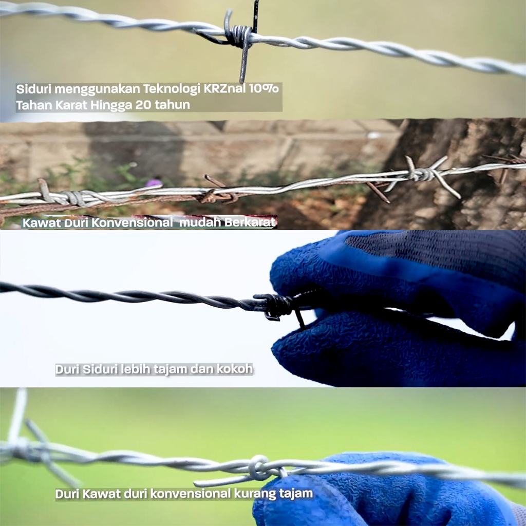 Kawat Duri L4P1s KR ZNal 10 PERSEN SiDuri Pagar Baja Hi Tensile tahan karat, 100M - 6,5kg