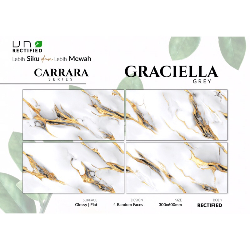 keramik dinding 30x60 motif marmer grey carara glossy kilap grey brown blue uno mewah cutting rectified