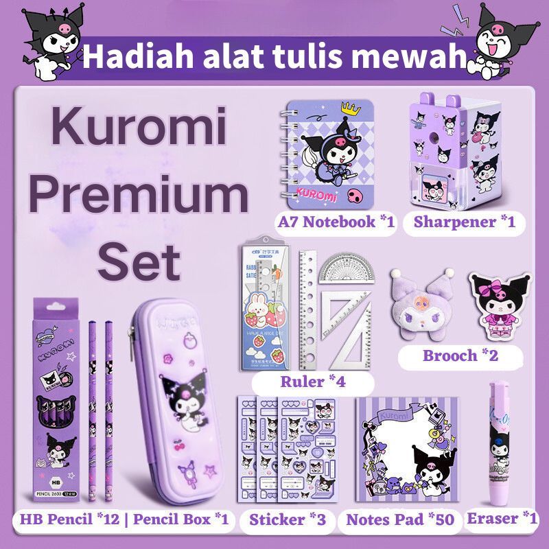 【】Set Alat Tulis Kuromi / Kotak Hadiah Mewah Alat Tulis Set / Stationery Untuk Hadiah Anak Sekolah Set / Anak Perlengkapan Sekolah