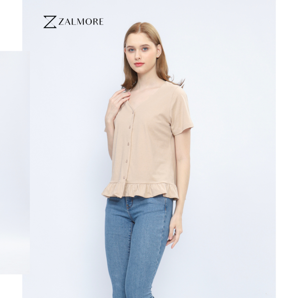 ZALMORE VNECK BUTTON T0P WITH RUFFLE PREMIUM COTTON - ATASAN WANITA