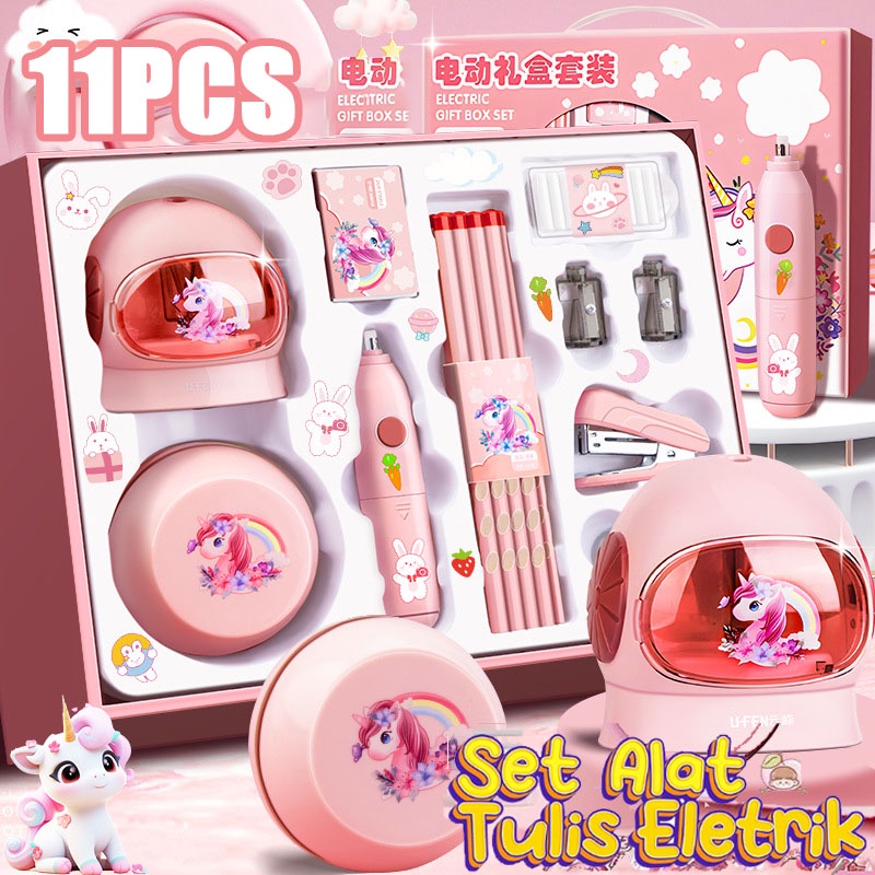 Set Alat Tulis Elektronik / Rautan Pensil Vakum Penghapus, Rautan Pensil, Stapler, Penghapus Elektrik 11 Buah