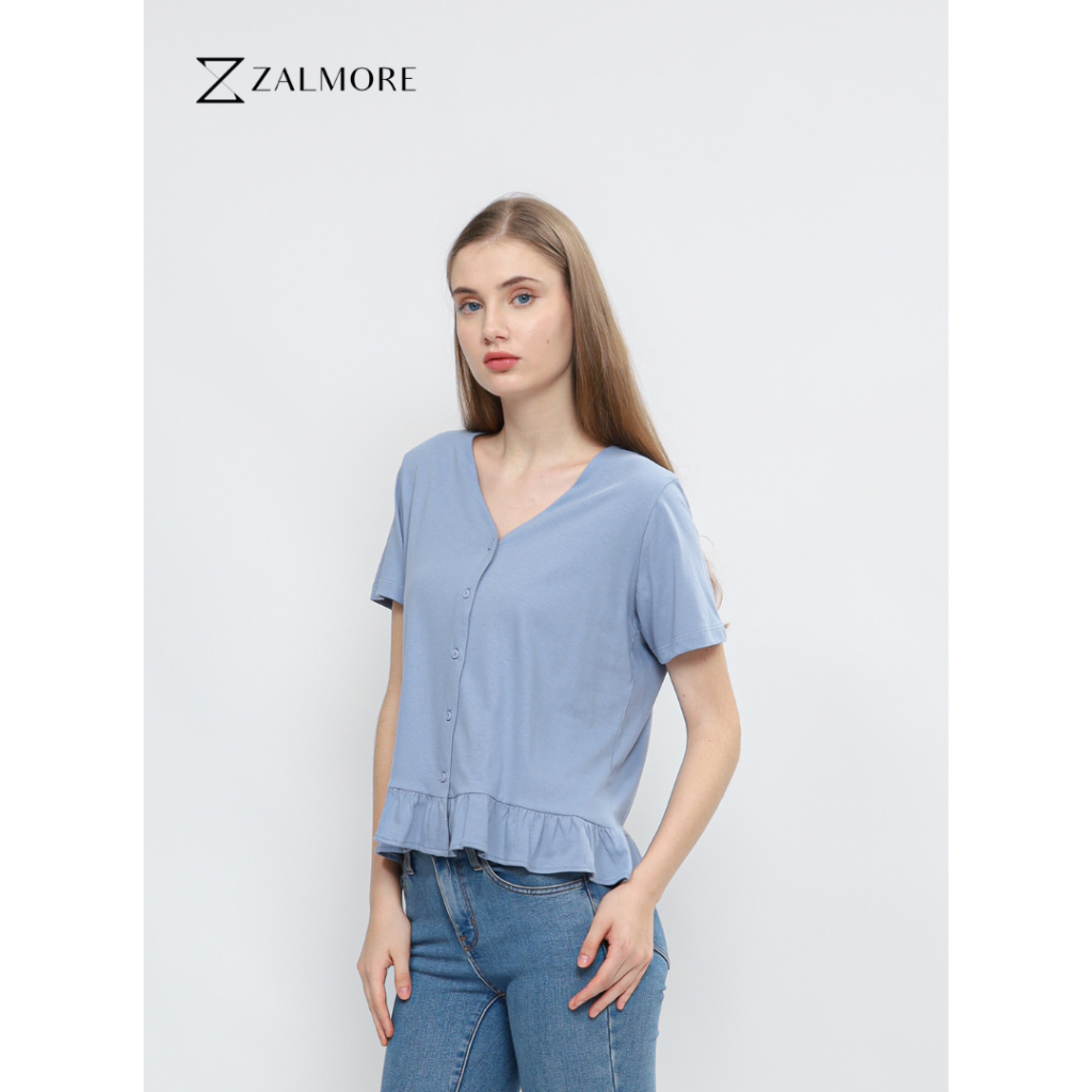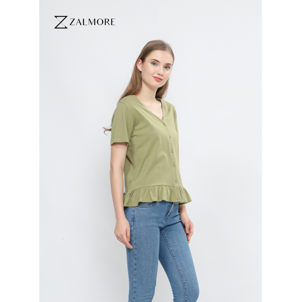 ZALMORE VNECK BUTTON T0P WITH RUFFLE PREMIUM COTTON - ATASAN WANITA