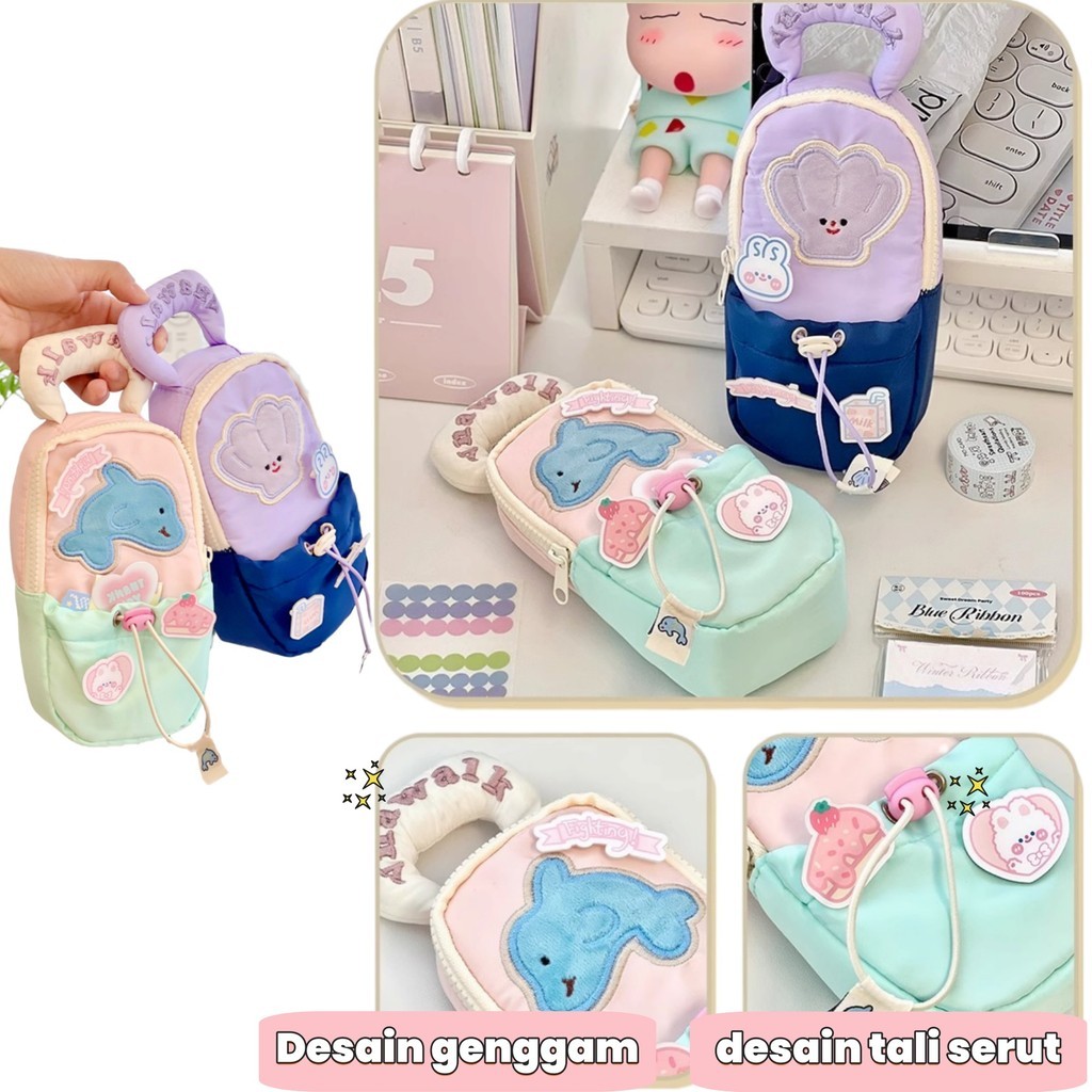 Kotak Pensil Cangkang Lumba-Lumba Lucu/Kotak Pensil Aesthetic Korea/Kotak Pensil Multifungsi/Kotak Pensil Kartun/Tempat Pensil Alat Tulis