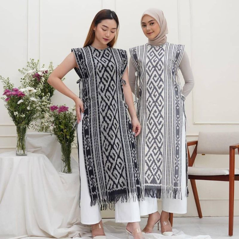VEST OUTER, VEST WANITA, LONG VEST TENUN, ROMPI BATIK, ROMPI TENUN
