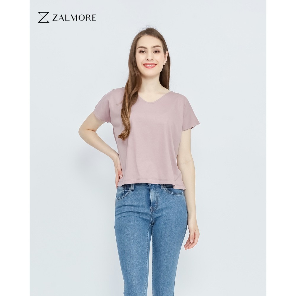ZALMORE WOMEN VNECK LOOSE T-SHIRT PREMIUM COTTON - KAOS WANITA